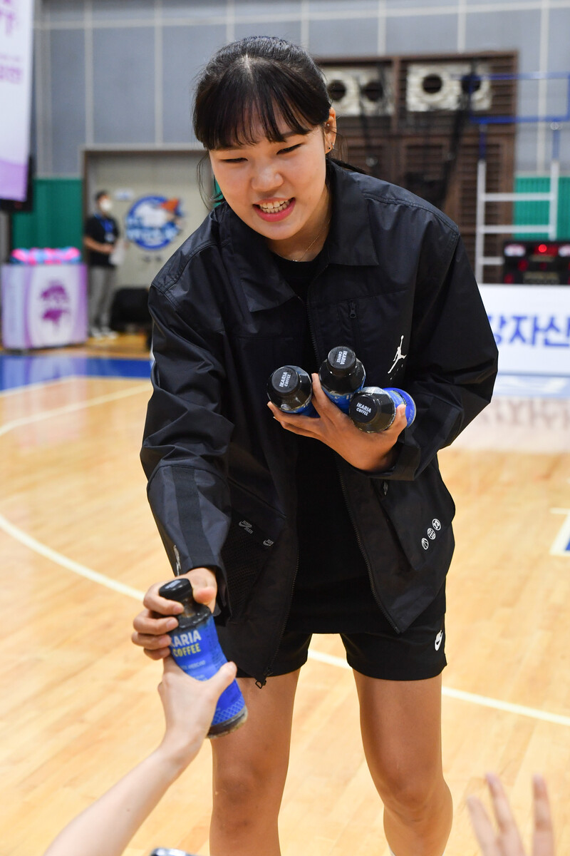이날 대회 도중 특별한 이벤트가 열렸다. 바로 여자 국가대표팀 선수들이 방문이었다. 이날 박지현 외에 이벤트를 위해 참석한 선수는 부천 하나원큐 신지현(174cm, G), 용인 삼성생명 윤예빈(180cm, G), 부산 BNK 진안(181cm, C), 청주 KB 허예은(165cm, G)이다. 이들은 오는 19일과 20일 청주체육관에서 열리는 라트비아와의 평가전을 위해 현재 진천 선수촌에서 훈련 중이다.