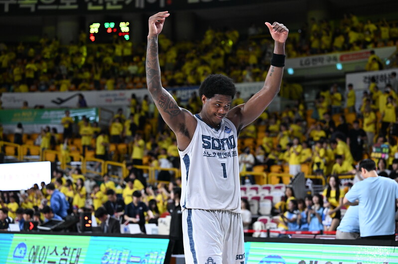 주도권이 완전히 소노로 넘어온 시점, 나이트는 승부에 확실한 쐐기를 박았다. 82-71로 앞선 경기 종료 1분 29초 전, 나이트가 마레이를 앞에 두고 던진 스텝백 3점슛이 그대로 림을 갈랐다. 나이트는 손가락을 입술에 대는 세리머니를 펼쳤고, 창원체육관은 조용하게 얼어붙었다. 이어 나이트는 소노 원정 팬들을 바라보며 환호성까지 이끌었다.