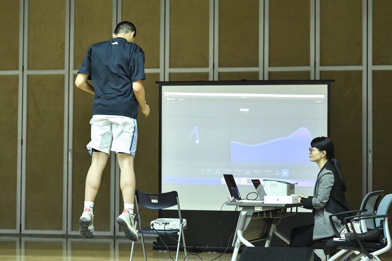 저희 시스템은 점프와 플랭크, 밸런스 등 3가지를 측정합니다. 그 중 수직 점프가 농구 선수에게 가장 중요한 요소라고 생각합니다. 최근 연구 결과에서도 ‘농구 선수의 실제 성능과 수직 점프가 연관 있다’고 알려졌거든요.