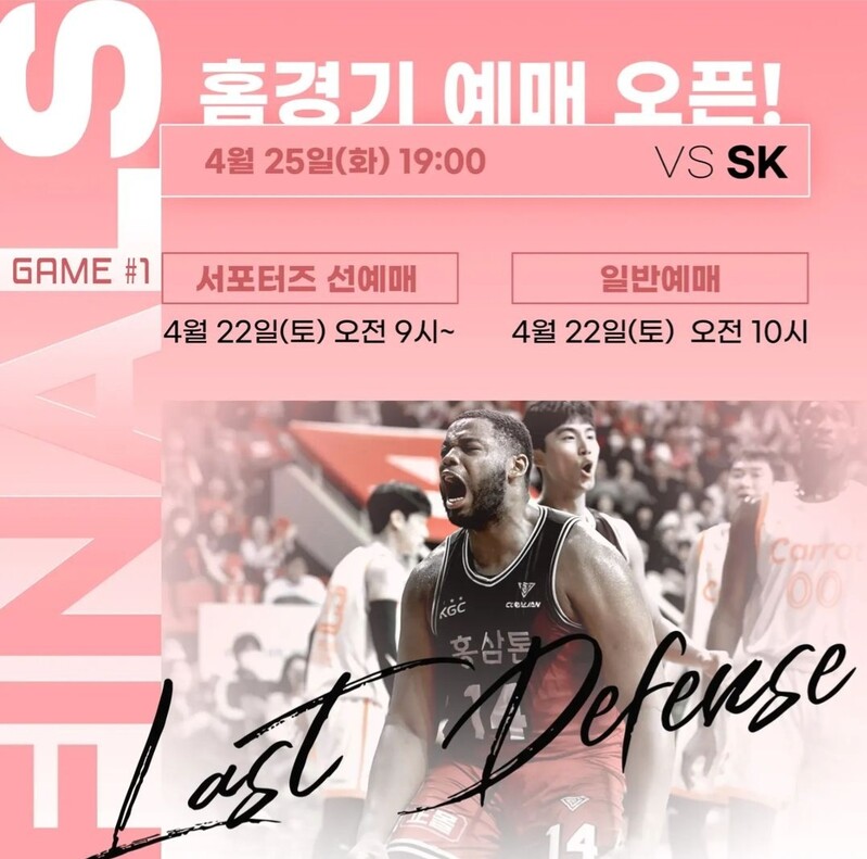 티켓 예매는 KBL 통합 홈페이지(kgc.kbl.or.kr) 또는 KBL 어플리케이션에서 경기일 3일 전 오전 10시부터 가능하며 ‘서포터즈300’ 가입자는 1시간 전인 오전 9시부터 응원석 예매가 가능하다.