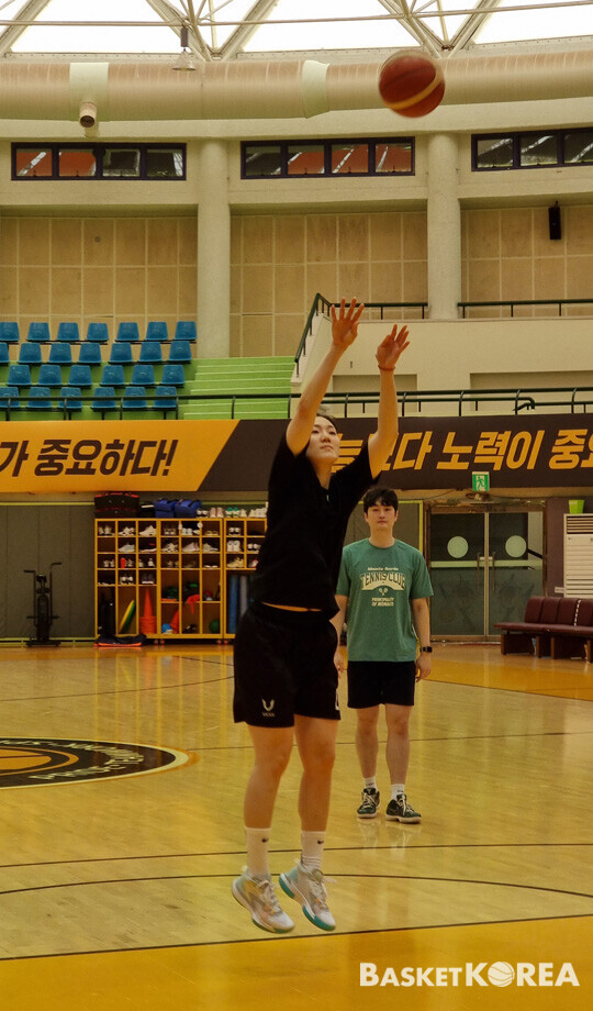 아킬레스건은 예민한 부위다. 그렇기 때문에, 배혜윤은 섣불리 팀 훈련을 할 수 없었다. 동료들과 천안 연합 연습경기에 동행했지만, 벤치에서 동료들을 지켜보는 게 전부였다. 훈련 또한 슈팅 연습으로 한정됐다.