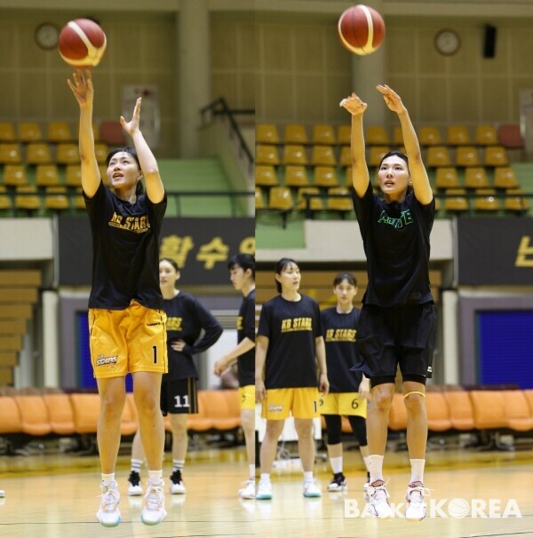 24일 찾은 천안 KB스타즈 훈련 체육관. 옥범준 스킬 트레이너를 중심으로 개인기 향상 훈련 프로그램을 가동 중인 팀 훈련 속에 두 선수 역시 조금도 흐트러진 모습 없이 참가하고 있었다.