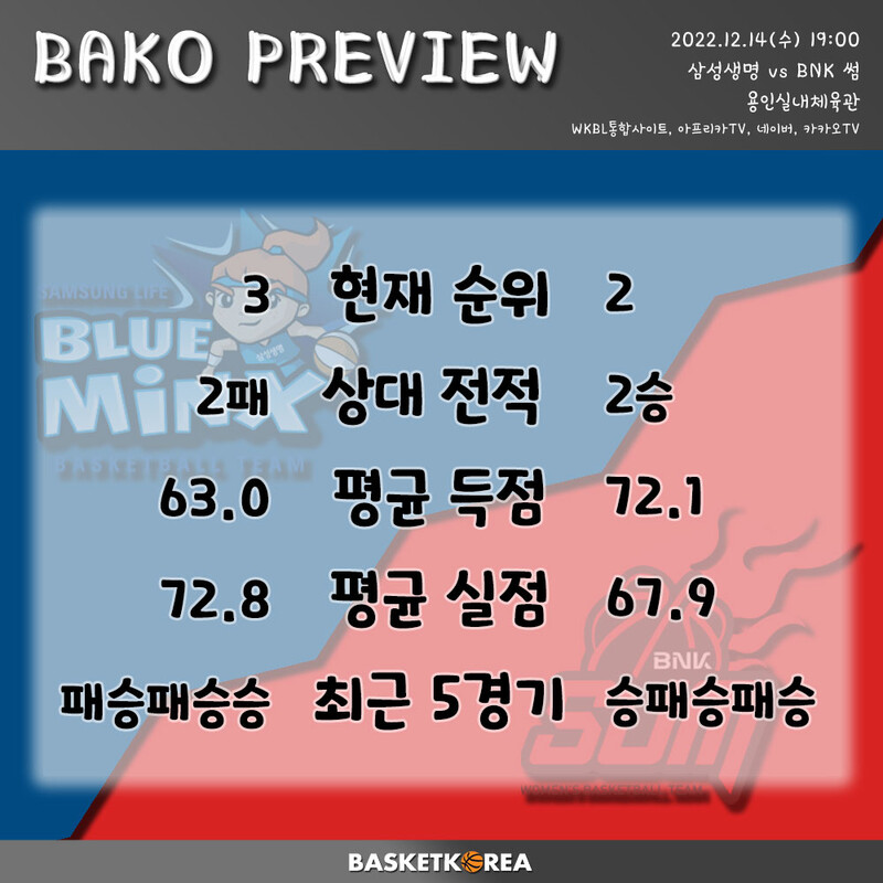 용인 삼성생명이 용인실내체육관에서 열리는 신한은행 SOL 2022~2023 여자프로농구 정규리그에서 부산 BNK 썸을 만난다.