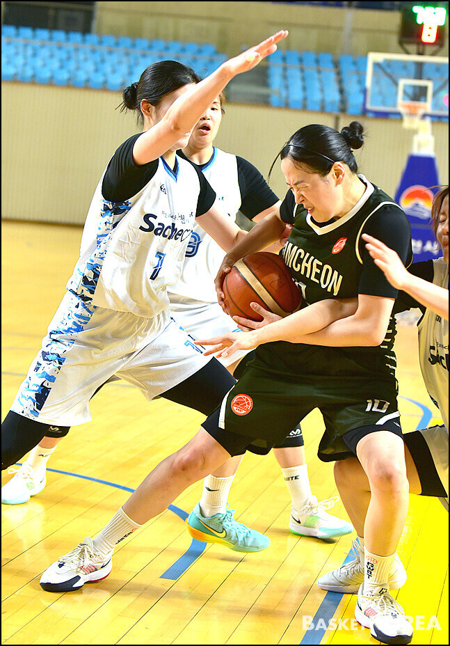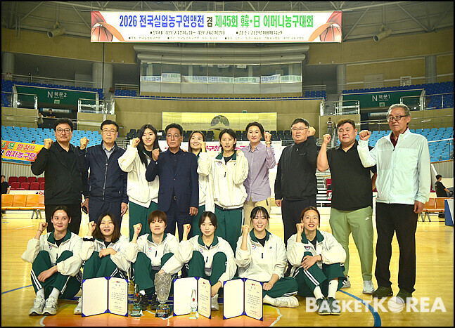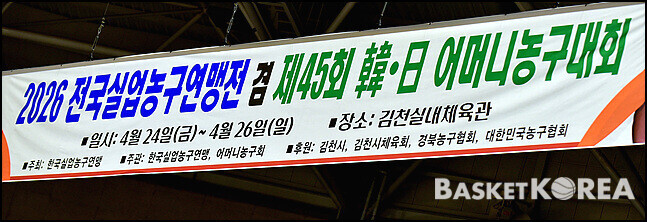[바스켓 코리아 = 김천 / 박영태 기자]  "2026년 전국실업농구연맹전 겸 제45회 한 일 어머니농구대회"가 4월24일부터 26일까지 3일간 김천실내체육관에서 열띤 경기가 펼쳐졌다. 26일 마지막날 열린 김천시청과 사천시청와의 경기는 57-55로 김천시청이 승리하여 우승을 차지했다. 이 날의 경기모습과 시상식 모습을 사진으로 담아 보았다.
