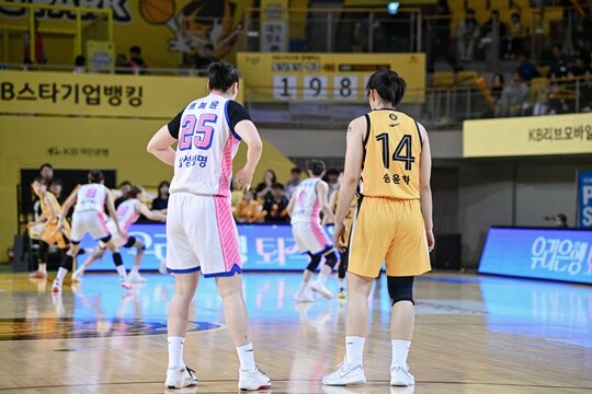 KB가 명승부를 펼쳤던 이유. 송윤하(179cm, C)의 힘이 컸다. 2024~2025 WKBL 신인 드래프트에 나섰던 선수이메도, 송윤하는 대담했다. 특히, 좋은 피지컬로 골밑 싸움을 잘해줬다. 그랬기 때문에, 허예은(165cm, G)과 강이슬(180cm, F)의 화력이 두드러졌다.