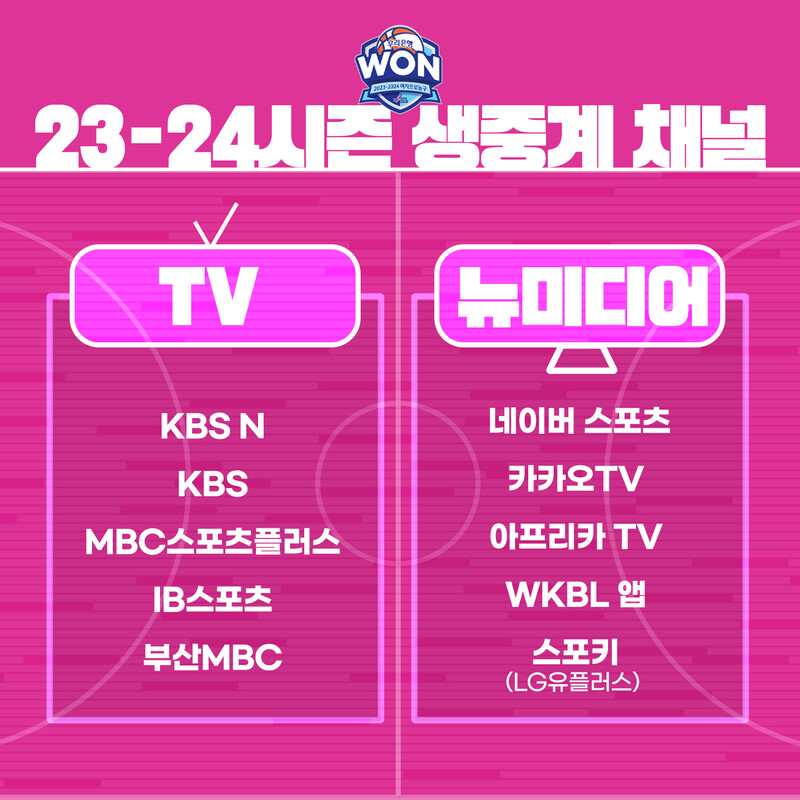 11월 5일(일) 개막하는 ‘우리은행 우리WON 2023~2024 여자프로농구’의 생중계 채널이 확정됐다.