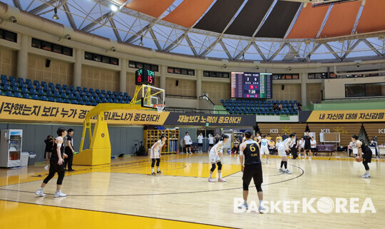 KB스타즈는 21일 KB국민은행 천안연수원에서 열린 부천 하나원큐와 연습 경기에서 40-36으로 이겼다. 용인 삼성생명과 2쿼터 경기를 한 후 곧바로 하나원큐전에 임했지만, 하나원큐와 에너지 싸움에서 밀리지 않았다. 21일에 열린 연습 경기 모두 이겼다.