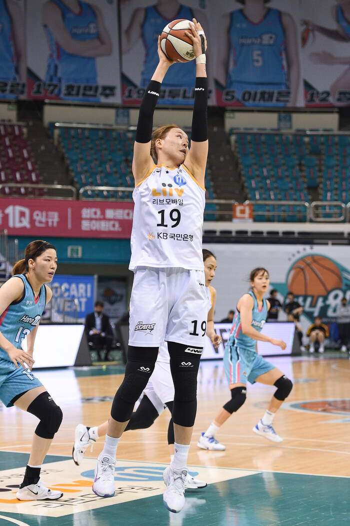 하지만 KB스타즈는 박지수가 건재했다. 여기에 심성영도 3점 2개를 터트리며 하나원큐의 의지를 꺾었다. KB스타즈는 잠시 박지수를 벤치로 불러들였고, 이 때는 김민정이 재치 있는 움직임으로 4점을 담당했다.