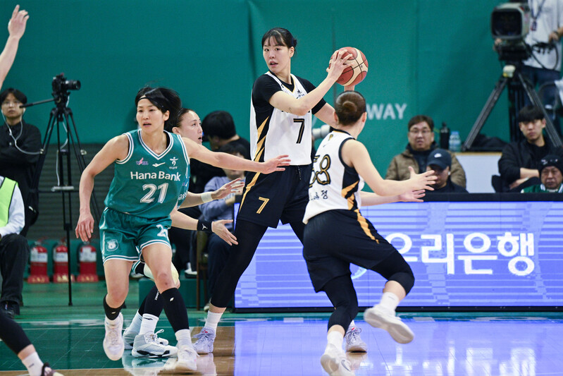 청주 KB는 25일 부천체육관에서 열린 BNK금융 2025~2026 여자프로농구 정규리그 경기에서 부천 하나은행을 87-75로 꺾었다. 이날 경기 승리로 2연승에 성공. 1위 하나은행과 격차를 2경기로 좁혔다.