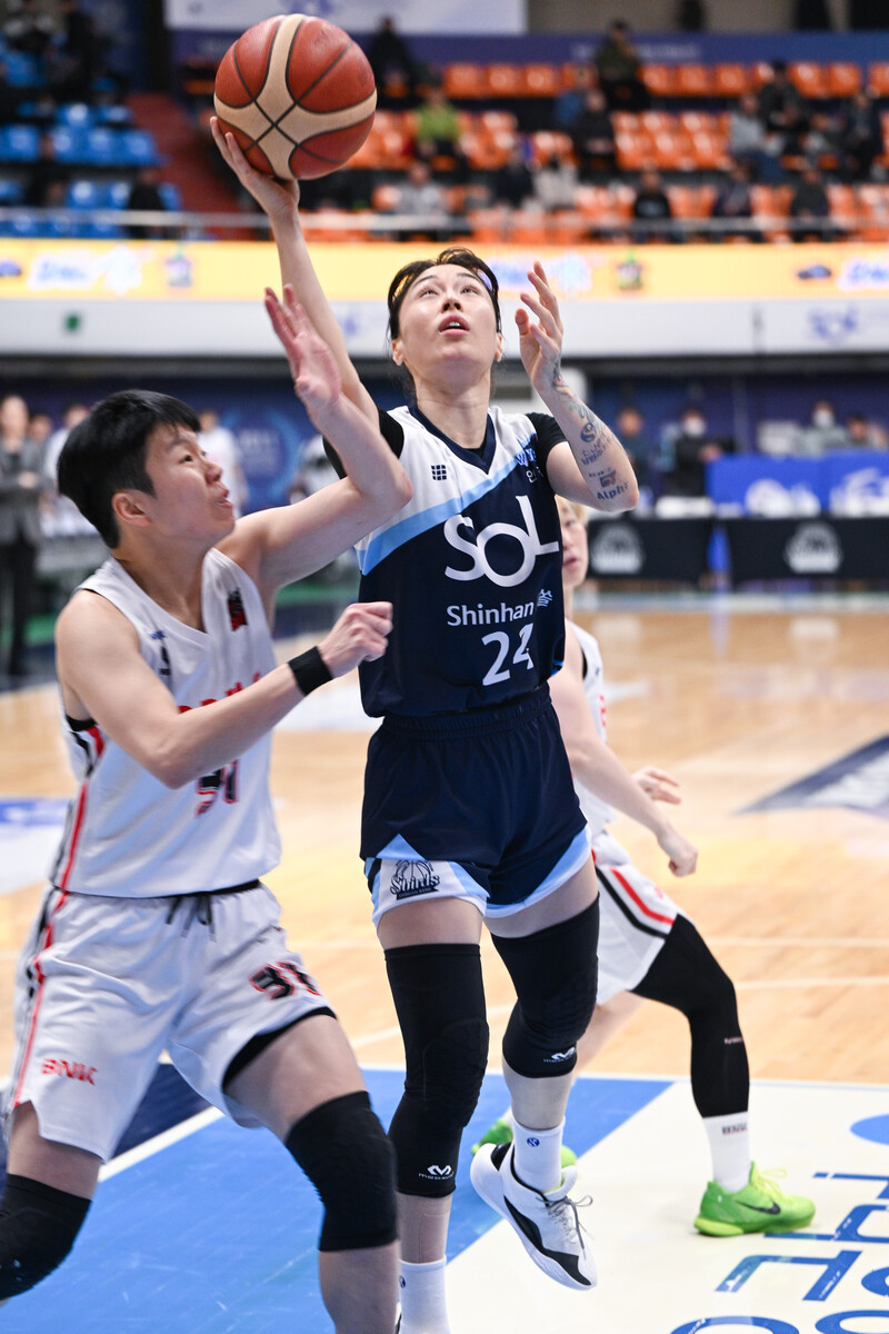 인천 신한은행이 29일 인천도원체육관에서 펼쳐진 우리은행 우리WON 2023~2024 여자프로농구 5라운드 부산 BNK 썸과 경기에서 69-64로 승리했다. 3연승을 내달린 5위 신한은행 시즌 전적은 7승 15패다. 4위 부천 하나원큐를 반 경기 차로 추격했다.