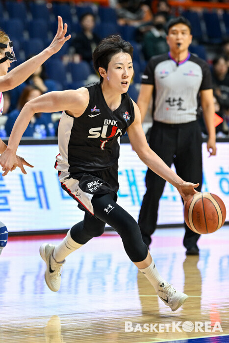 침착한 드리블로 공격을 시작하는 BNK 이소희