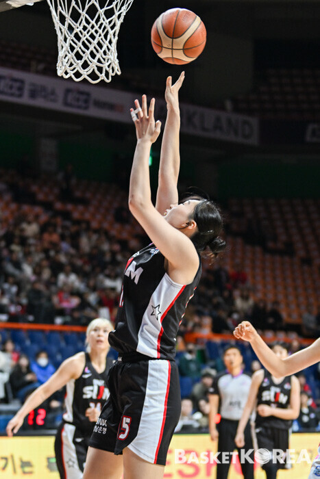 빠르게 달려들어 레이업 시도하는 BNK 이소희