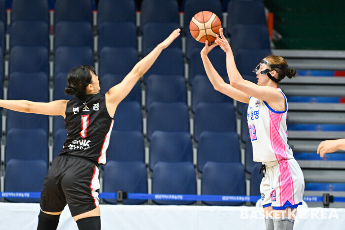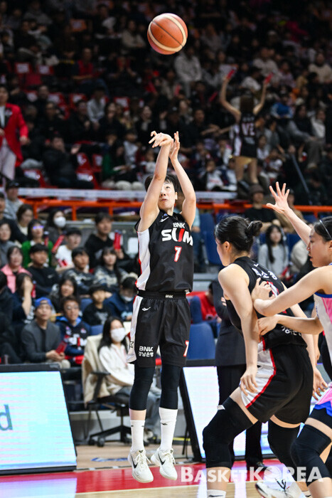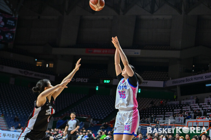 상대 수비에 아랑곳않고 슛 시도하는 BNK 박혜진