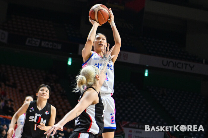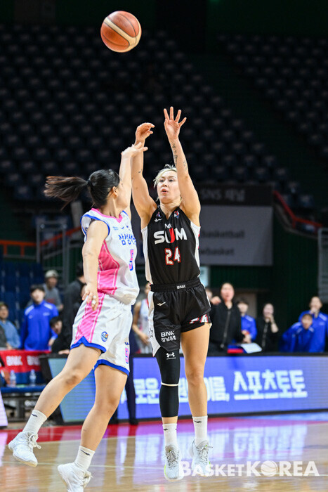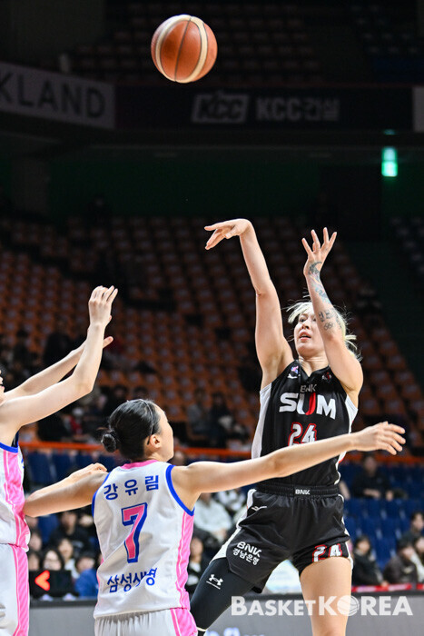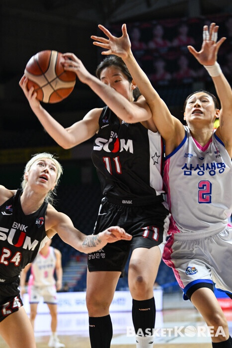 [바스켓코리아=부산/신혜지 기자] 17일 부산 사직체육관에서 BNK금융 2025-2026 여자프로농구 BNK와 삼성생명의 경기가 열렸다. 오늘 경기는 54:50, BNK가 승리를 차지했다.