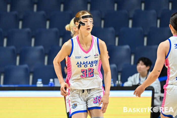 마스크 착용하고 경기에 임하는 삼성생명 윤예빈