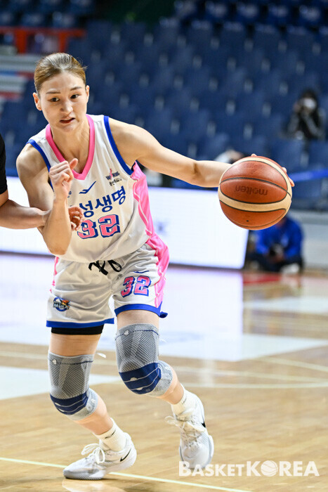 강한 드리블로 공격해 들어가는 삼성생명 윤예빈