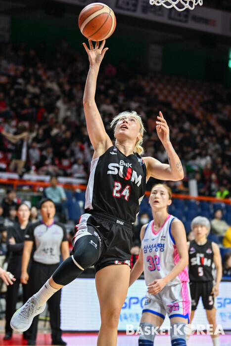 골밑으로 뛰어들어 빠르게 슛으로 연결하는 BNK 김소니아