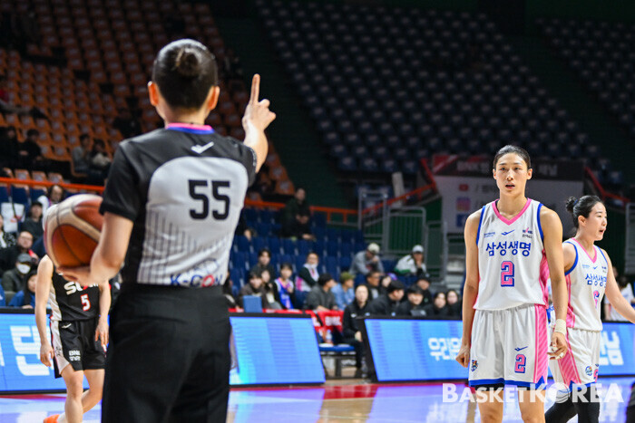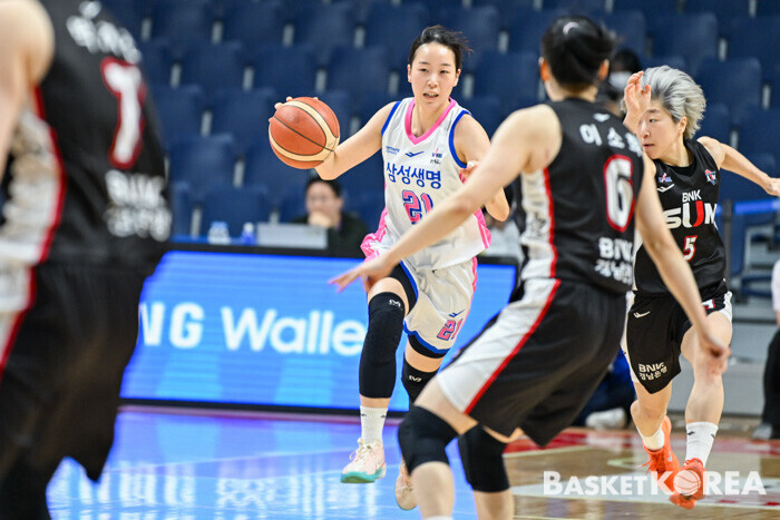 선수들 위치 조율해주는 삼성생명 배혜윤