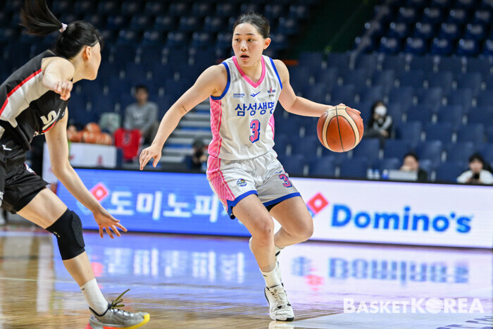 빠른 드리블로 공격해 들어가는 삼성생명 최예슬