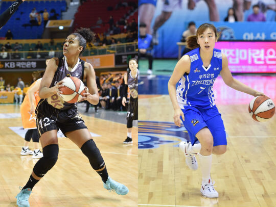 | OK저축은행의 다미리스 단타스(좌), 우리은행의 박혜진(우) |