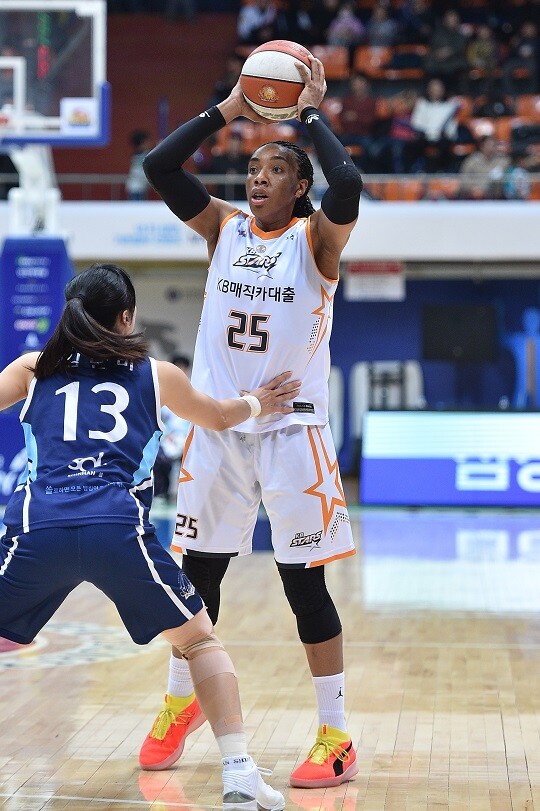 카일라 쏜튼(3점슛 2개 포함 27점 15리바운드 3어시스트)이 맹활약한 청주 KB스타즈는 2일(토) 인천도원체육관에서 펼쳐진 우리은행 2018~2019 여자프로농구 인천 신한은행과의 시즌 다섯 번째 맞대결에서 73-62로 승리했다.