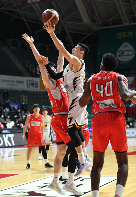 그러나 이관희의 공격 본능은 사라지지 않았다. 이대성(190cm, G)이 수비를 왼쪽으로 몰자, 이관희는 기다렸다는 듯 돌파했다. 이정제(205cm, C)의 느린 도움수비를 활용해, 왼손 레이업 성공. 파울 자유투까지 얻었다. 추가 자유투도 성공. 첫 득점을 3점 플레이로 장식했다.