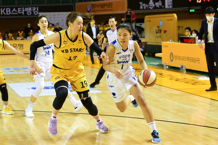 박지현은 지난 KB스타즈와 맞대결에서 ‘메인 볼 핸들러’라는 중책을 거머쥐었다. 그 때부터 자신감을 보였다. 비록 박지수(196cm, C)가 일찌감치 부상으로 이탈한 것도 컸지만, 큰 키에 운동 능력, 볼 핸들링까지 겸비한 박지현의 역량은 위성우 우리은행 감독의 박수를 유도했다.