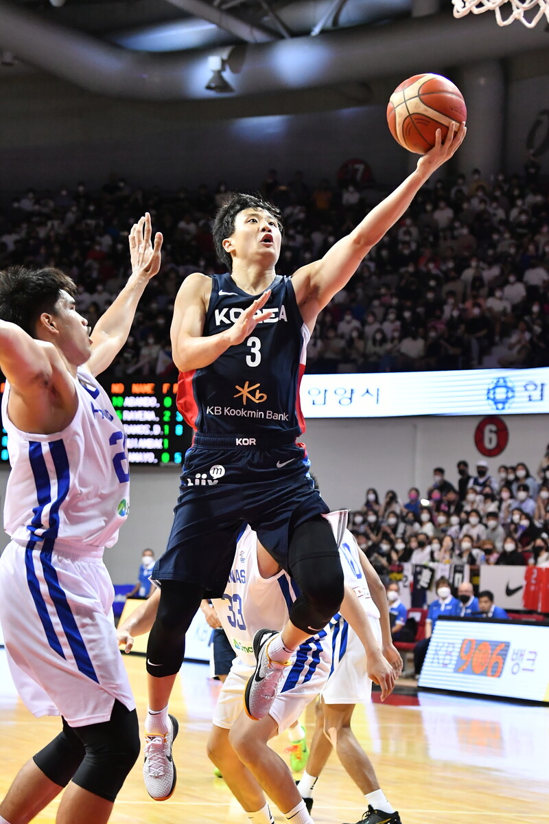 라건아(200cm, C)와 여준석(202cm, F)이 골밑에서 필리핀 빅맨을 압도한 가운데 허웅의 외곽이 적재적소에 터졌다. 허웅은 3쿼터 종료 직전 바스켓카운트를 성공시키며 대표팀의 리드를 이어갔다. 4쿼터에도 허웅은 승부처에서 3점과 외곽을 모두 성공시키며 승리를 조력했다.