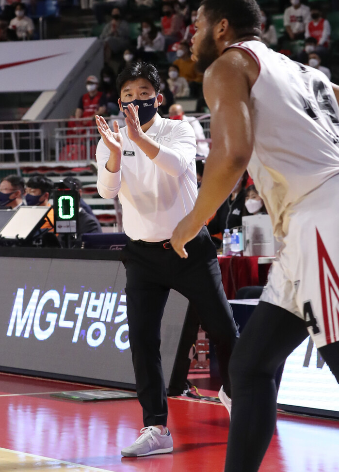 승패에 상관없이 안양 KGC와 창원 LG가 제일 무섭다고 밝힌 전희철 SK 감독. 결국 이날도 KGC 선수들의 자신감 넘치는 공격을 제어하는데 실패했다. 경기 전, 전희철 감독이 말한 "KGC가 너무 무섭다"라는 발언은 현실로 다가오고야 말았다.