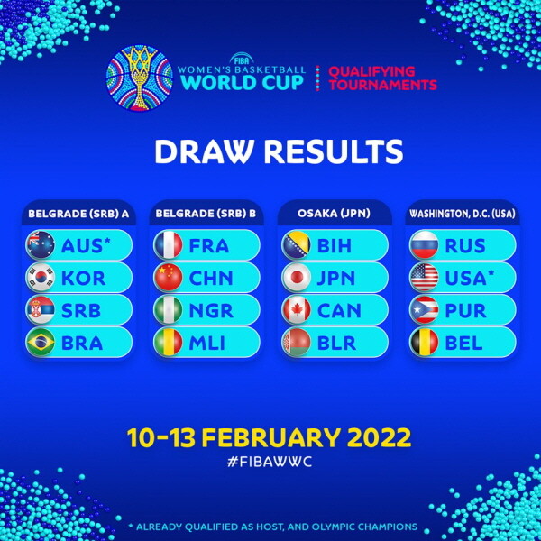 대한민국은 2022 FIBA 여자 농구 월드컵 예선 A조에서 호주, 브라질, 세르비아와 경기를 펼친다. 장소는 세르비아 베오그라드이다.