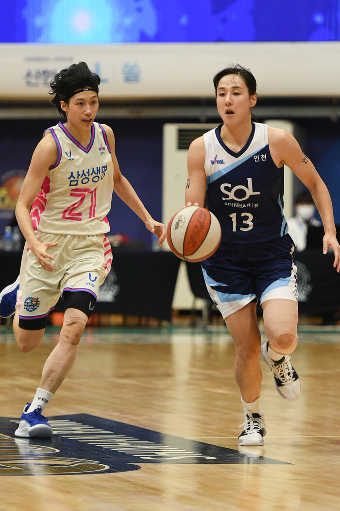 인천 신한은행은 지난 22일 인천도원체육관에서 열린 삼성생명 2021~2022 여자프로농구 정규리그에서 용인 삼성생명을 76-59로 꺾었다. 6승 3패로 다시 단독 2위에 올랐다. 연패의 위기에서도 벗어났다.
