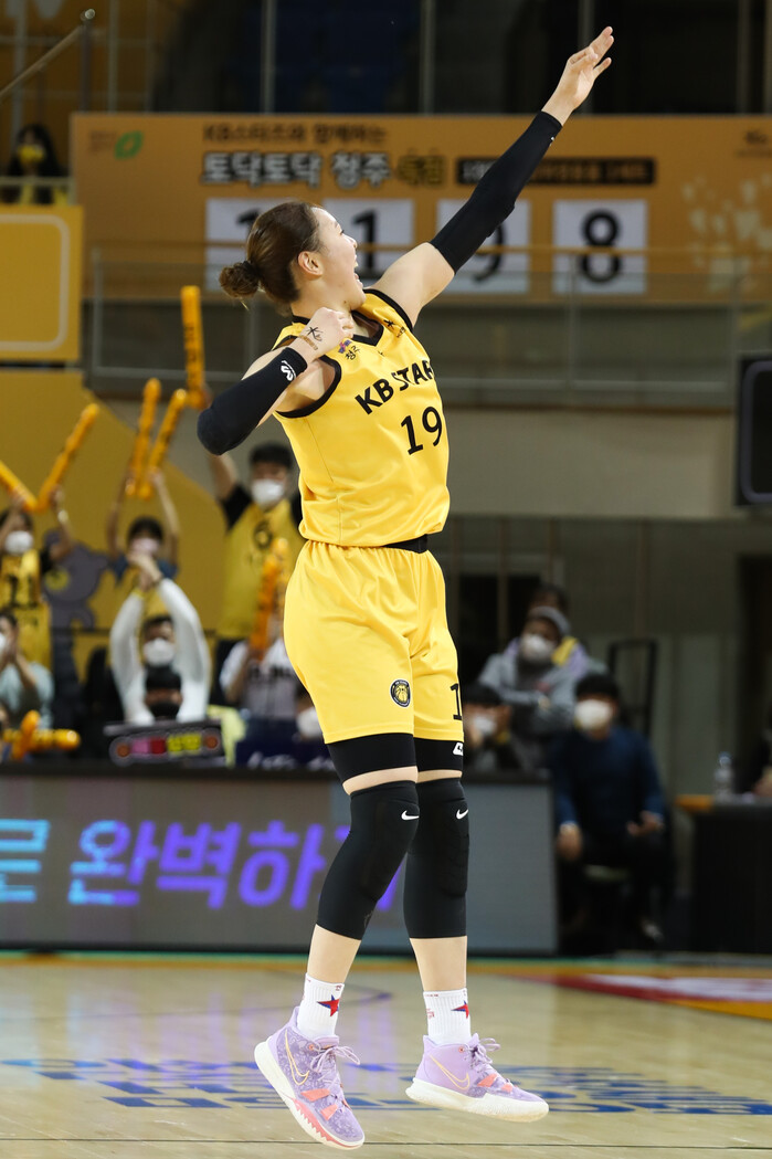 청주 KB스타즈는 지난 17일 청주체육관에서 열린 삼성생명 2021~2022 여자프로농구 정규리그에서 인천 신한은행을 77-69로 꺾고, 2위 아산 우리은행과의 격차를 4.5로 벌려냈다.