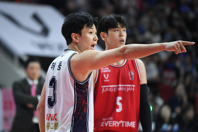 그러자 형이 나섰다. 허웅이 경기 초반 수비에 집중했다. 정관장의 앞선을 강하게 압박했다. 그 결과 전반 동안, ‘가드 왕국’이라고 불리던 정관장의 앞선을 7점으로 꽁꽁 묶었다. 특히 주로 매치업된 변준형(185cm, G)을 이날 단 3점으로 봉쇄했다.