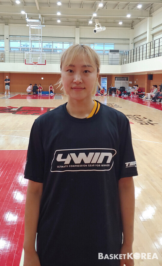 염윤아는 원래 KB스타즈에서 보석 같은 역할을 하는 선수다. KB스타즈의 창단 첫 통합 우승(2018~2019)에 많은 기여를 한 선수이기도 하다. 지난 9일 BNK와의 연습경기에서 변치 않는 기여도를 보여줬다. 하지만 이전과 달라진 게 있다. 머리를 밝은 색으로 염색한 것.