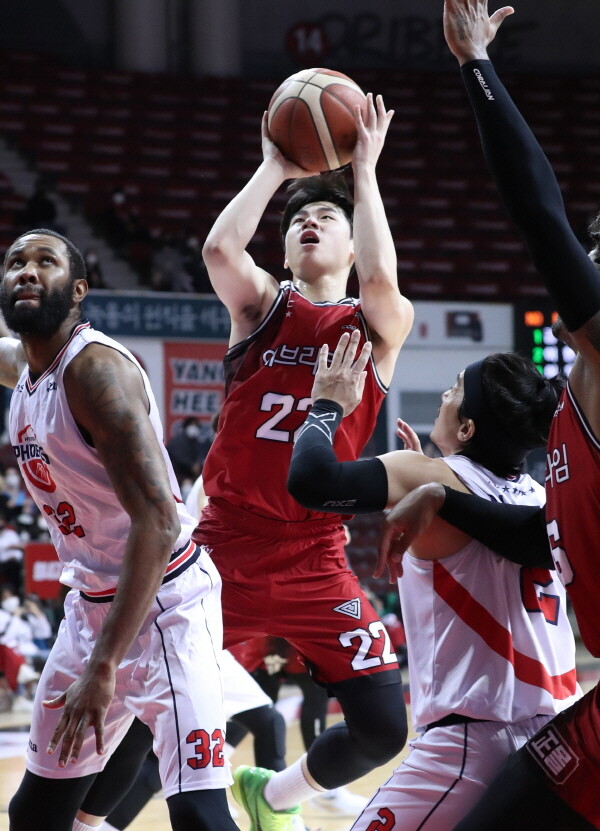점수차가 2점으로 줄어 들었다. KGC에게 위기였다. 조은후가 종료 11초를 남겨두고 돌파를 감행했다. 성공했다. 승리를 확신하는 순간이었다.