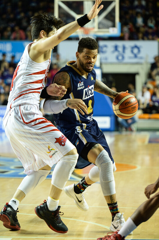 KCC 특유의 리바운드 후 빠른 공격이 나오지 않았다. 수비 조직력도 끈끈하지 않았다. 라건아(200cm, C)-송교창(199cm, F)-이정현(189cm, G) 삼각편대가 여전히 위력적이었지만, 뭔가 부족했다.