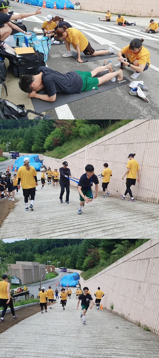 언덕 스프린트를 먼저 했다. 어떤 언덕인지 궁금하던 찰나에, ‘설마 저기일까?’라는 곳이 있었다. ‘설마’는 ‘현실’이 됐고, 기자는 아무 생각 없이 언덕을 바라봤다.(‘언덕 스프린트’는 전지훈련 중 딱 한 번 있는 프로그램. 기자는 ‘왜 하필...’이라는 생각도 했다)