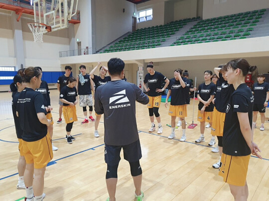 안덕수 KB스타즈 감독과 인사를 나눴다. 기자는 조심스럽게 “운동을 한 번 체험해봐도 될까요?”라고 물었고, 안덕수 감독은 “옷 갈아입으셔야죠”라며 운동복 상의를 건넸다.(운동복 하의는 지참한 상태였다. 혹시나 해서, 가방에 넣어왔기 때문)