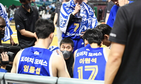 연이어 김상규에게 3점슛을 내준 마지막 수비 장면에 대해 “(장민국에게) 트랩을 가라고 지시했다. 1대1을 통해서 막기는 어렵다고 생각했다. 결과적으로 나의 실수다. 라건아를 막아야 한다는 생각을 했다.”고 전한 후 “수비 능력은 하루 아침에 개선되지 않는다. 키가 작은 선수들이 막다보니 체력적인 어려움이 있었다고 본다. 아쉬운 건 아쉬운 거다.”고 말하며 인터뷰를 정리했다.