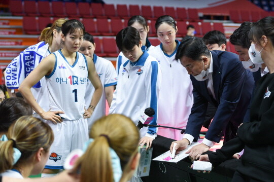 이날 하나원큐는 전반을 38-38로 마치고도 큰 점수 차로 패했다. 후반 들어 좀처럼 공격이 풀리지 않았으며 실책으로 공격 기회를 내주기도 했다. 4쿼터 시작과 함께 나온 하프라인 바이얼레이션이 결정적이었다. 이를 두고 이 감독은 “말도 안 된다”며 아쉬워했다.