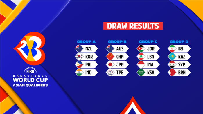 FIBA는 지난달 31일 2023 FIBA 농구 월드컵 대륙별 예선 조 편성을 발표했다. 아시아 예선의 경우, 16개국이 4개조로 나눠 경기를 치른다. 대한민국(세계 랭킹 29위)은 A조에 편성되어 뉴질랜드(세계 랭킹 25위)와 필리핀(세계 랭킹 31위), 인도(세계 랭킹 78위)를 상대한다.