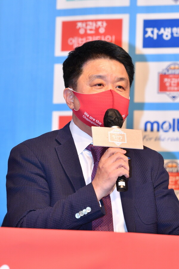 7일 서울 청담동에 위치한 리베라 호텔에서 2021-2022 KGC정관장프로농구 미디어데이가 열렸다. 마지막 순서는 천신만고 끝에 PO 티켓을 거머쥔 유도훈 감독의 출사표였다.