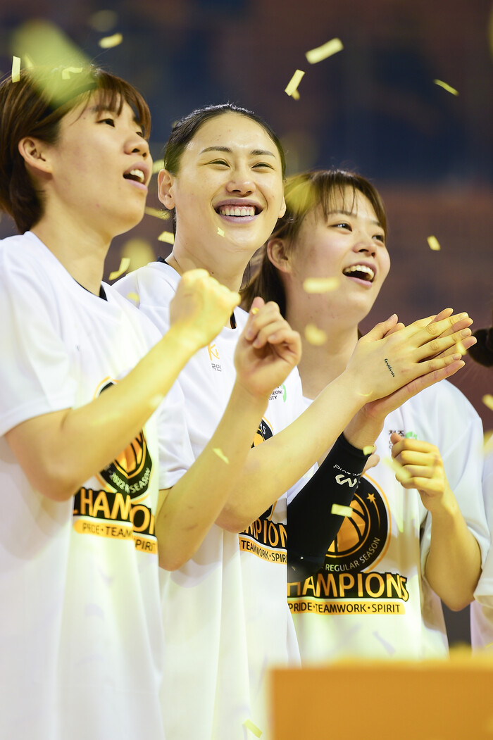 KB스타즈는 이날 승리로 구단 역사상 4번째 정규리그 우승을 달성했다. 동시에 역대 최단 기간인 24경기 만에 우승을 확정짓는 기록도 세웠다. 강이슬은 이날 12득점 5리바운드로 팀 승리에 일조하며 프로 첫 우승의 영광을 누렸다.