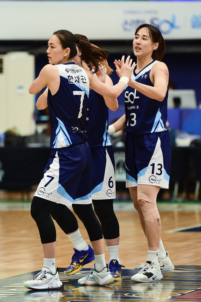 양 팀 삼각 편대의 화력이 돋보인 날이었다. 신한은행이 판정승을 거뒀다.