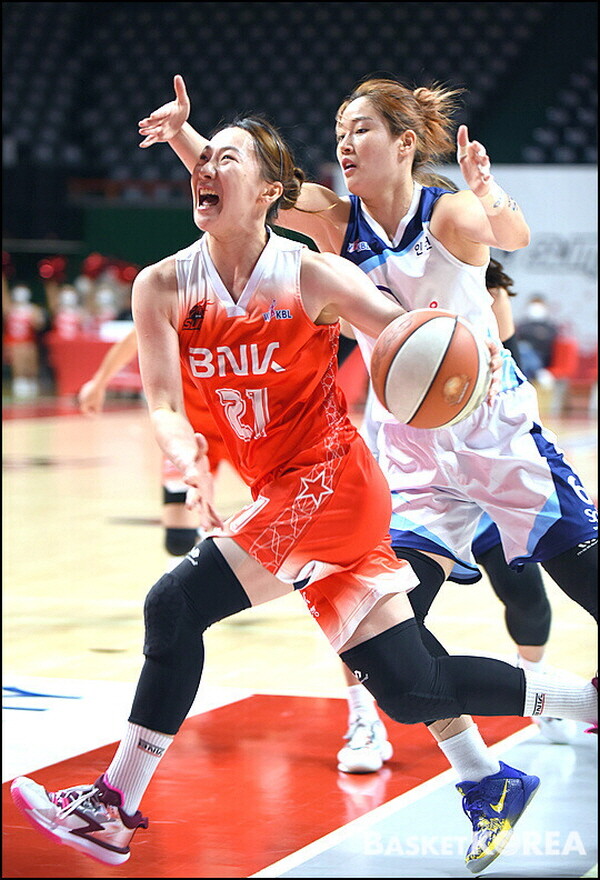공격이외 부분에서도 엄청난 영향력을 발휘했다. 활발한 움직임으로 공격 리바운드 5개를 잡아냈다. 또한, 수비에서도 공헌도가 뛰어났다. 김단비(180cm, F)와의 매치업에서 공격자 파울 2개를 이끌어냈다.