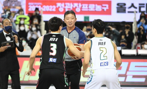 바로 '농구 대통령' 허재가 특별 심판으로 나선 것. 팬들은 박수로 허재를 맞이했다. 허재는 근엄한 표정으로 홍선희, 이태희, 김백규 심판과 함께 코트로 들어섰다.