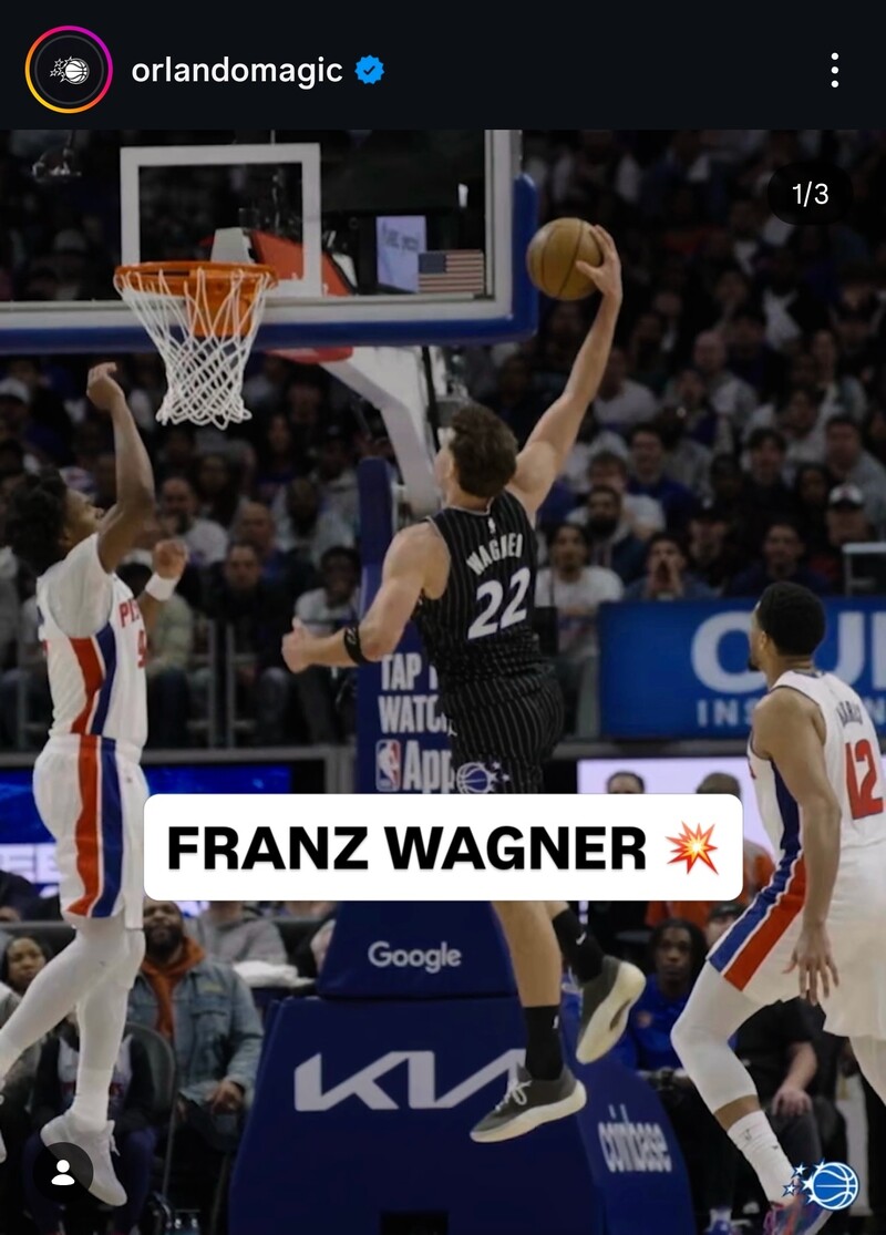 올랜도 매직은 20일(한국시간) 디트로이트에 위치한 Little Caesars Arena에서 열린 2025~2026 NBA 플레이오프 동부 컨퍼런스 1라운드 1차전에서 디트로이트 피스톤스를 112-101로 꺾었다. 디트로이트에 ‘플레이오프 홈 경기 11연패’를 안겼다.