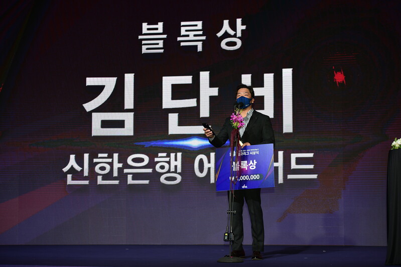 청주 KB스타즈의 박지수(196cm, C)가 시상식 처음부터 3관왕을 차지했다. 그러나 시상식 단상에 모습을 드러내지 못했다. 득점상과 2점 야투상, 리바운드상을 수상했지만, 코로나19로 인한 자가 격리에서 풀리지 않은 것. 대신 KB스타즈 마스코트가 수상했다.