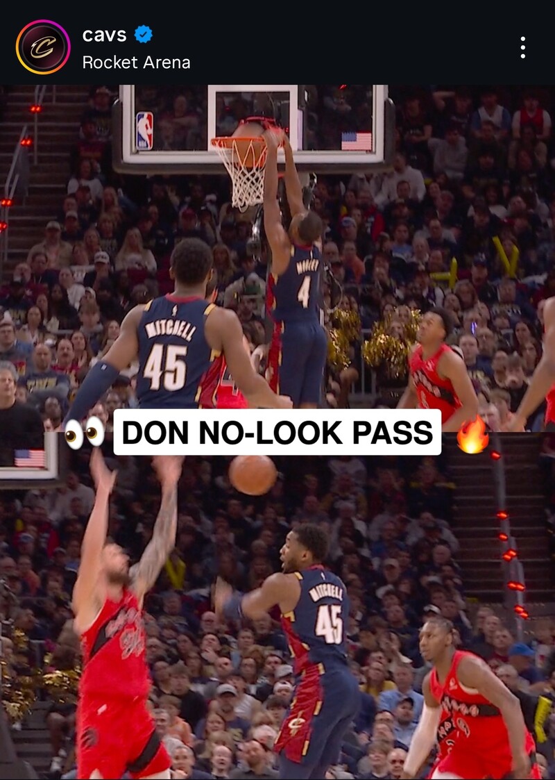 미첼은 수비부터 했다. 토론토의 볼을 스틸한 것. 그 후 2대2를 했고, 스크린 이후 림 근처로 파고 드는 재럿 앨런(206cm, C)에게 패스. 앨런의 골밑 득점을 도왔다.