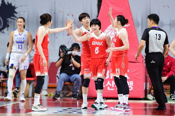 부산 BNK 썸은 15일 부산사직체육관에서 열린 삼성생명 2021~2022 시즌 여자프로농구 아산 우리은행과의 경기에서 55-54로 승리했다. 이날 승리한 BNK은 4승 11패를 기록하며 5위를 유지했다.